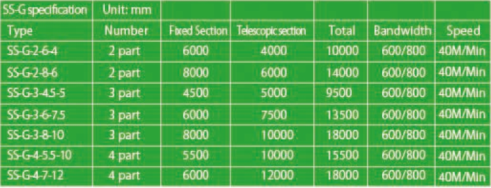 - The Fixed type telescopic belt conveyor can expands its length horizontally